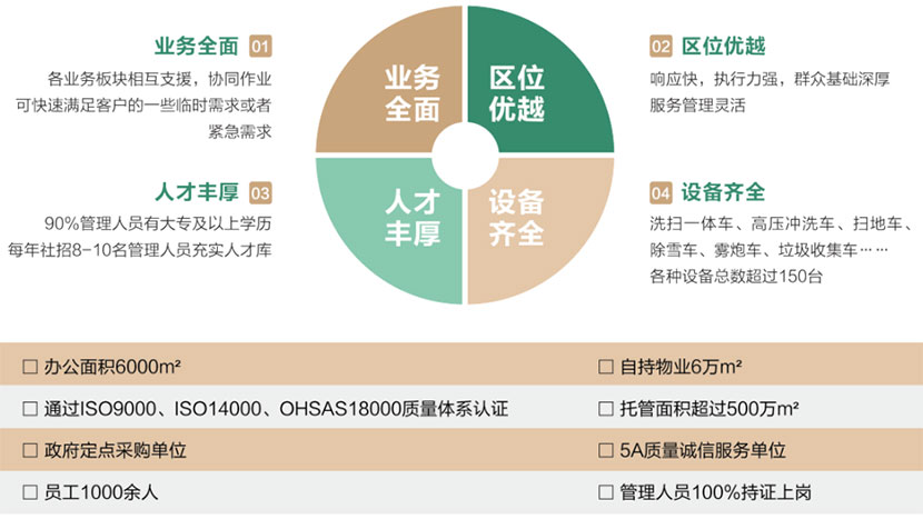 公司以客戶需求為導(dǎo)向,經(jīng)過十多年的發(fā)展,在最初的市政環(huán)衛(wèi)業(yè)務(wù)的基礎(chǔ)上不斷開發(fā)新業(yè)務(wù),拓展新邊界,目前已形成多個(gè)優(yōu)質(zhì)服務(wù)項(xiàng)目。